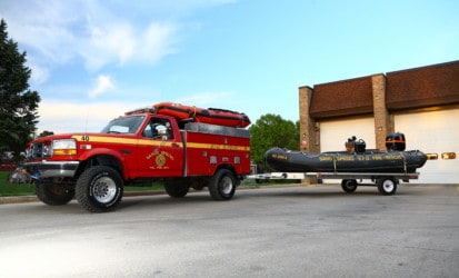 Boat Support 740 tows Boat 740 to water rescue calls. It also carries Boat 740 Bravo at all times. These units ensure those playing, and working in and around the waters of Sandy Spring, are protected and safe.