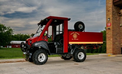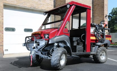 ATV 740B is a 2011 Kawasaki Mule 4010 Diesel, Brush skid with 115 Gallons of water, on board pump, portable pump, chains saw and assorted tools.