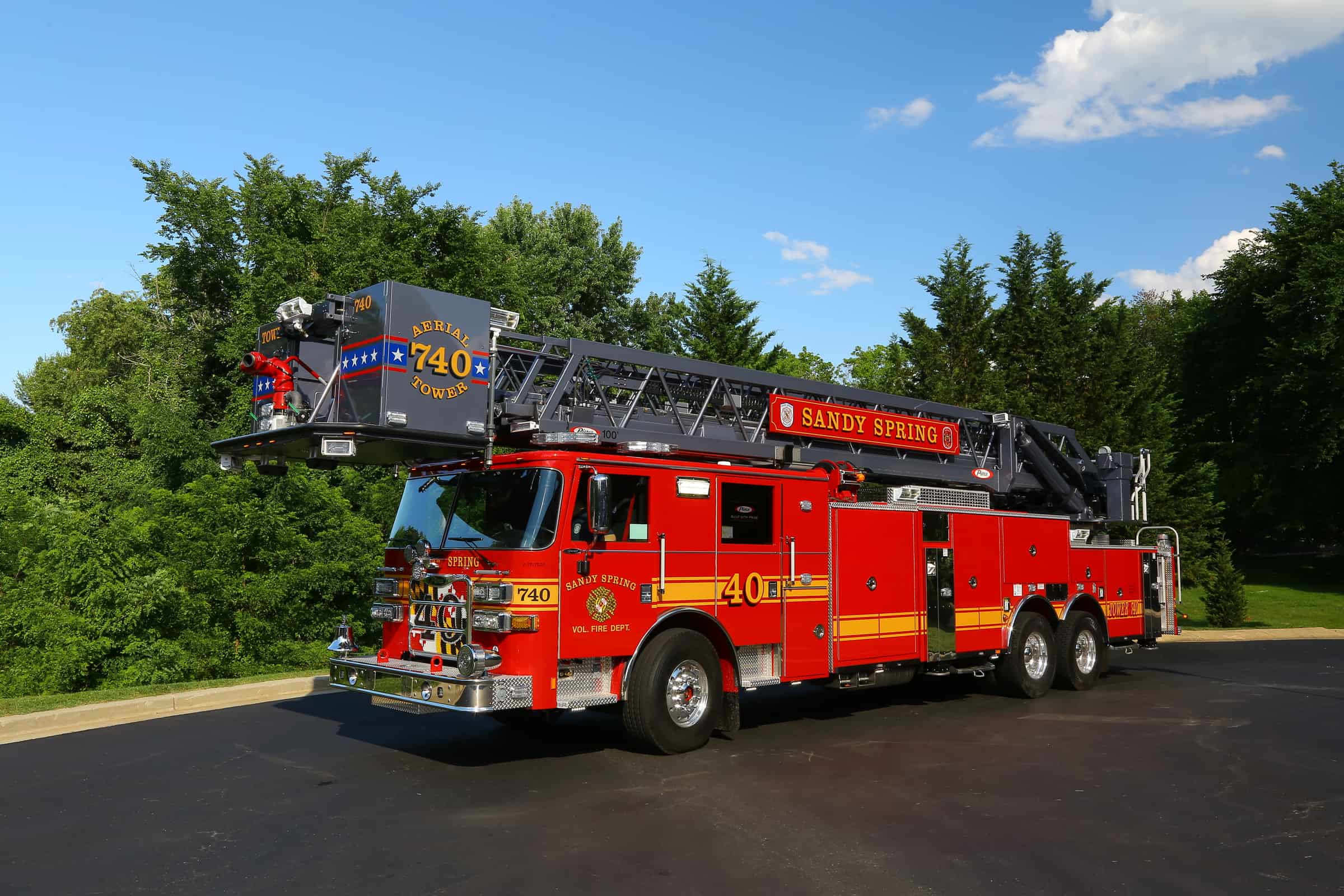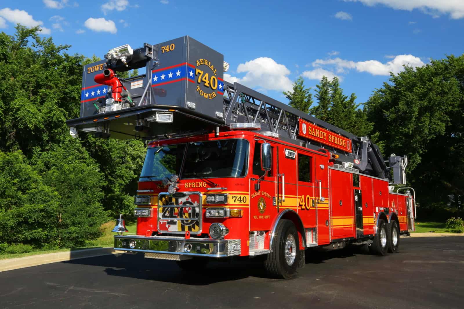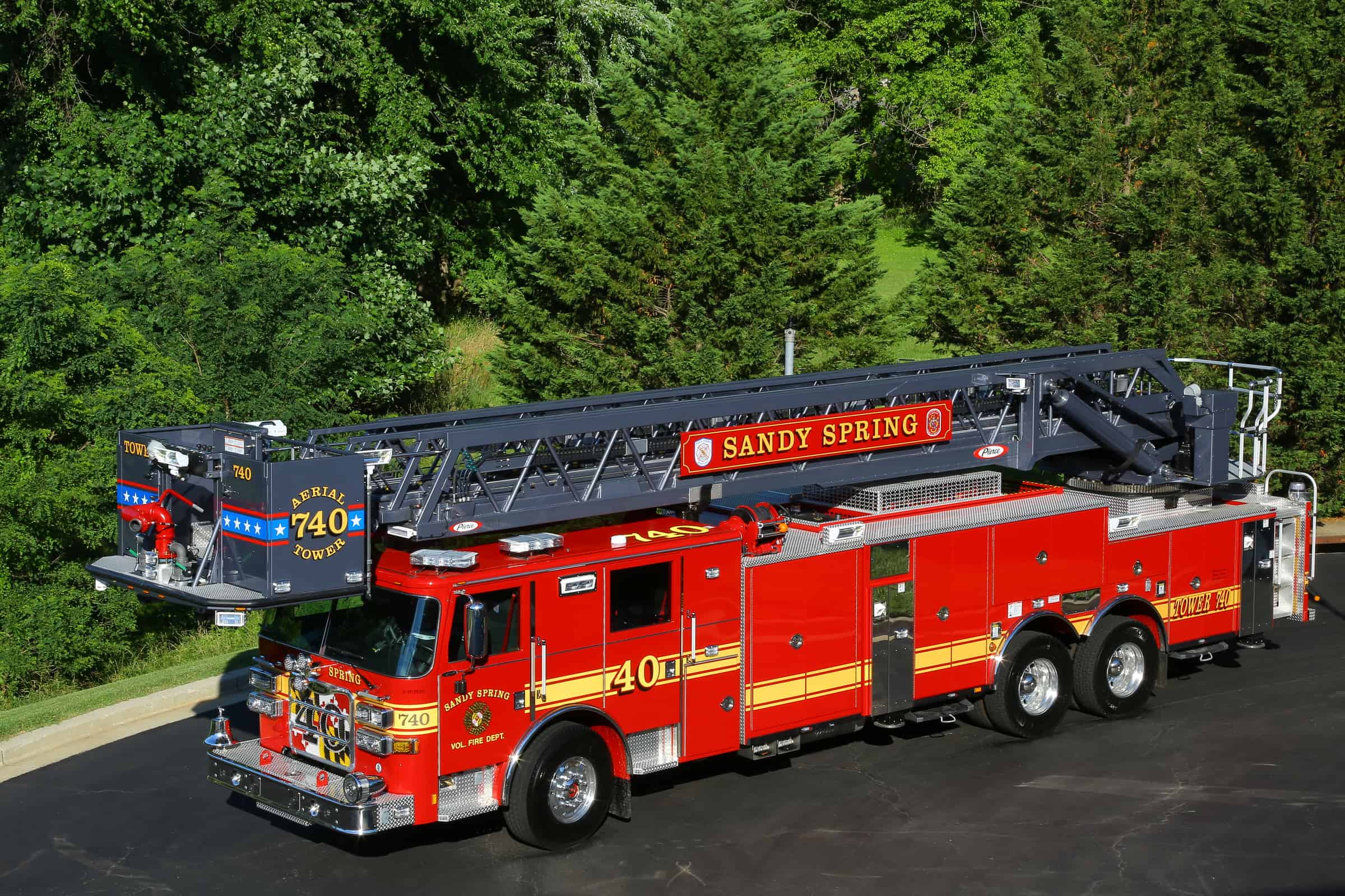 The new AT740 is a 2017 Pierce Arrow XT with a 100′ Aerial Tower. It is equipped with 284 feet of ground ladders, a 20kw Diesel Generator, 2000 GPM waterway, and a variety of Tower Company tools and equipment.