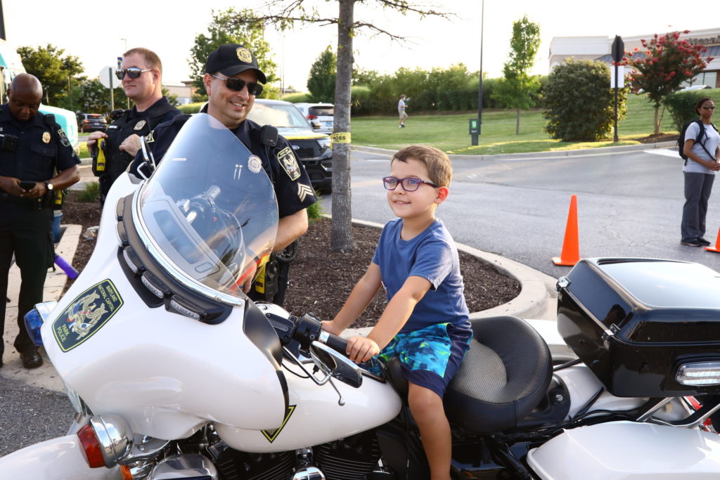 “National Night Out is an annual community-building campaign that promotes police-community partnerships and neighborhood camaraderie to make our neighborhoods safer, more caring places to live. National Night Out enhances the relationship between neighbors and law enforcement while bringing back a true sense of community. Furthermore, it provides a great opportunity to bring police and neighbors together under positive circumstances. Millions of neighbors take part in National Night Out across thousands of communities from all fifty states, U.S. territories and military bases worldwide on the first Tuesday in August (Texas and select areas celebrate on the first Tuesday in October). Neighborhoods host block parties, festivals, parades, cookouts and various other community events with safety demonstrations, seminars, youth events, visits from emergency personnel, exhibits and much, much more.”